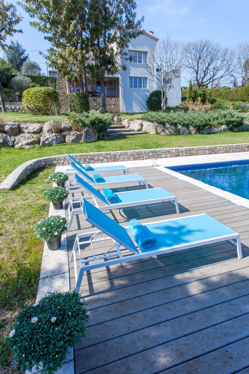 Villaen er på ca. 180 kvm, og tomten er ca. 2.000 kvm. Boligen ligger usjenert til, i et godt nabolag, kun 7 minutters kjøring fra Cannes sentrum, 2 minutter til stranden og kort vei til det hele! Det er privat svømmebasseng i hagen.