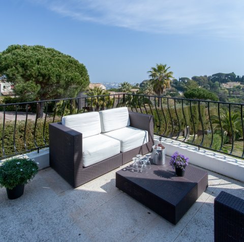 På høyden utenfor Cannes, i det vakre området Super Cannes og Vallauris, finner man denne herlige eiendom, med god kvalitet og super beliggenhet.